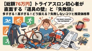 初心者向け情報 【総額76万円】トライアスロン初心者の初期費用を全公開!失敗しない道具選びのコツと推奨価格帯 トライアスロン初期費用76万円を全公開!●スイム・バイク・ラン各用品の全リスト ●失敗しにくい推奨価格帯一覧 ●買って後悔したアイテム5選。ネット購入と実店舗の使い分けなど、実体験に基づいた「賢い揃え方」を紹介。これから挑戦する方が最短ルートで準備を整えるためのガイドです。 2026.04.05 初心者向け情報