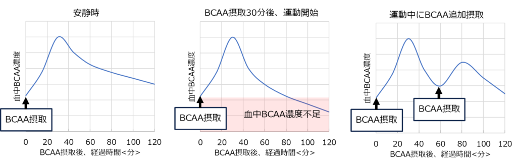 - BCAAは 摂取後およそ30分で血中濃度が高まる